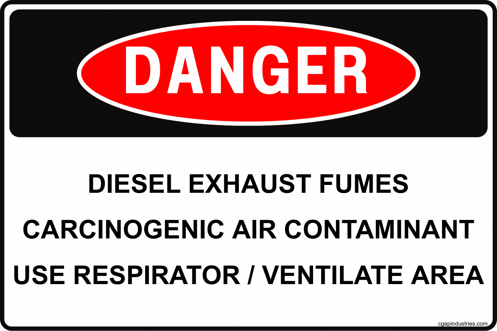 - DANGER – DIESEL EXHAUST – Alerts workers that diesel fumes contain carcinogens and require ventilation or respiratory protection.
