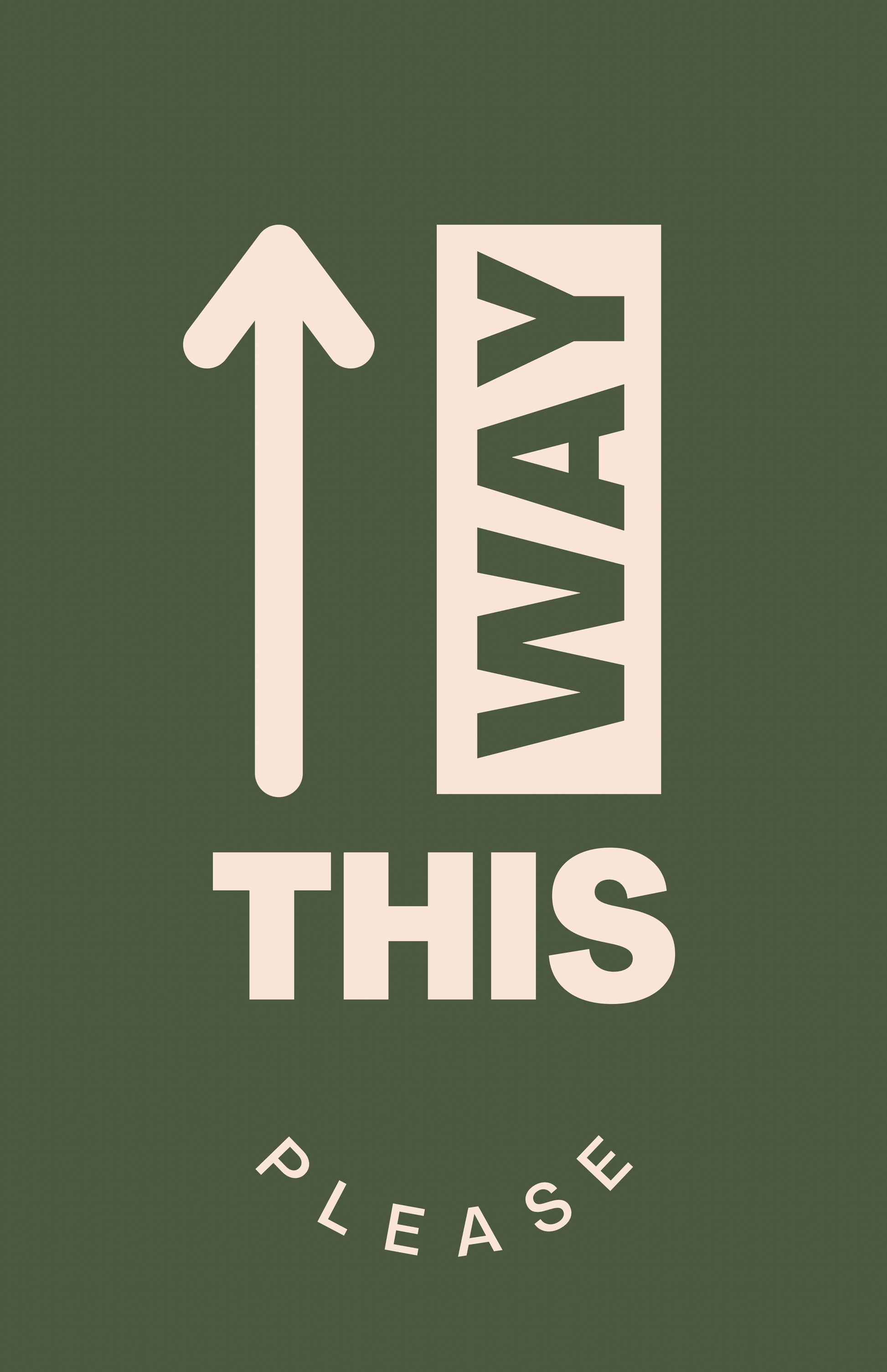 The “This Way Please” directional sign combines function with a modern aesthetic. Featuring a cream arrow and text on a sage-green background, it’s perfect for hospitality, retail, and office environments that value clean design.