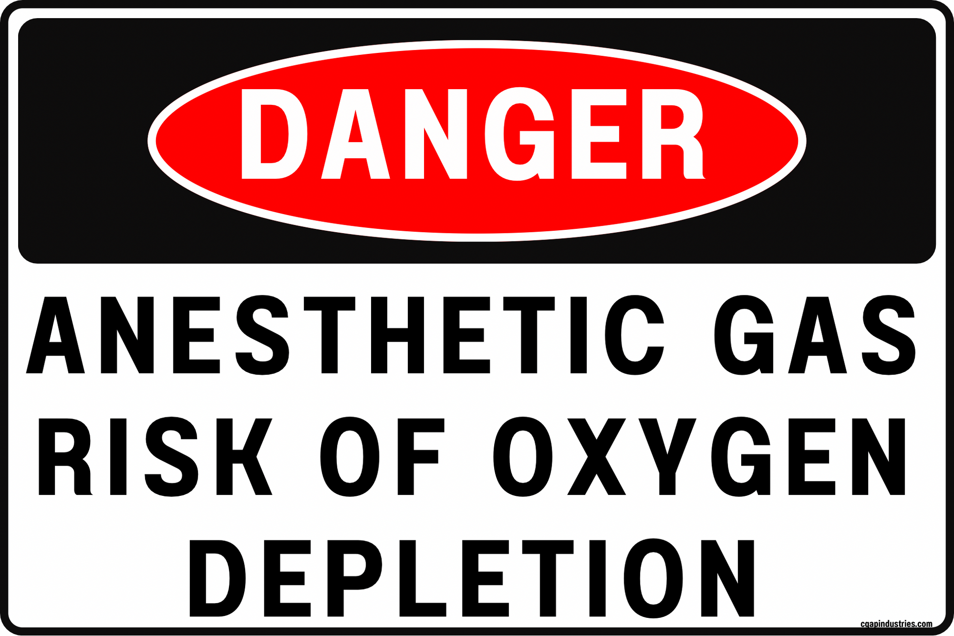 Important: This sign is a hazard communication tool and does not replace required ventilation/scavenging systems, oxygen monitoring, training, PPE policies, or facility procedures. Follow all site-specific requirements and applicable standards for anesthetic gas safety and oxygen-deficiency control.