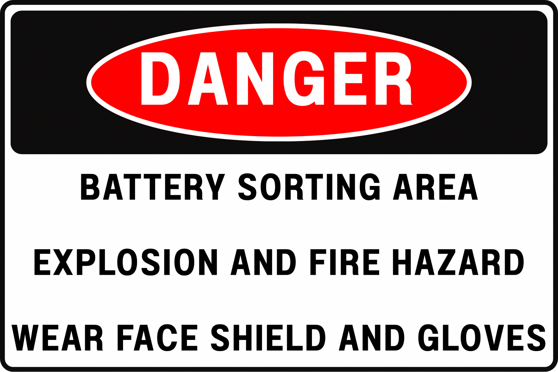 • Improves operational awareness: High-contrast professional graphics and clear "DANGER" header provide instant hazard recognition near battery sorting conveyors & collection bins to support site safety compliance.