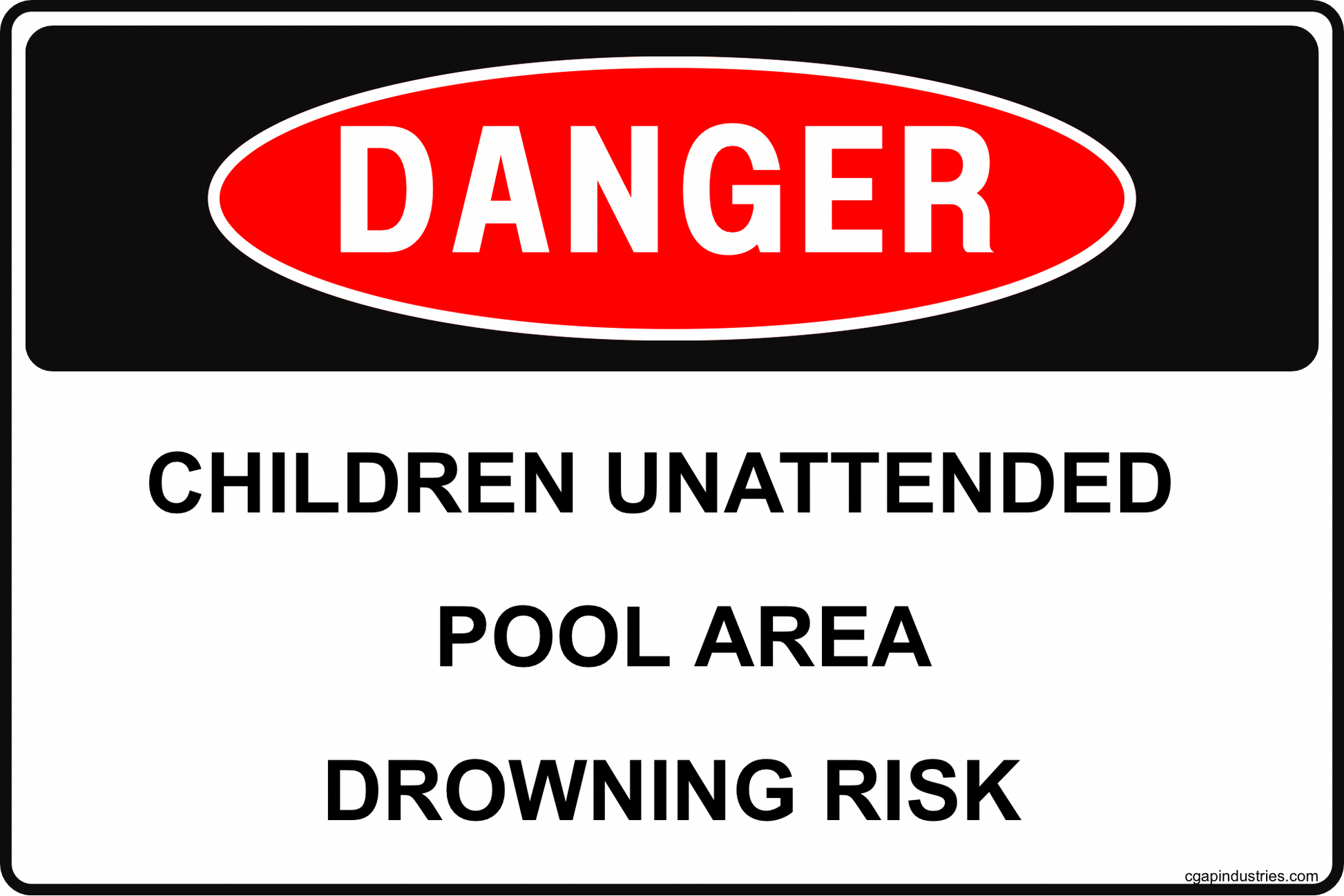 - POOL DROWNING RISK WARNING SIGN – “Danger / Children Unattended / Pool Area / Drowning Risk” clearly warns adults and visitors that leaving children alone near the pool is dangerous and unacceptable.