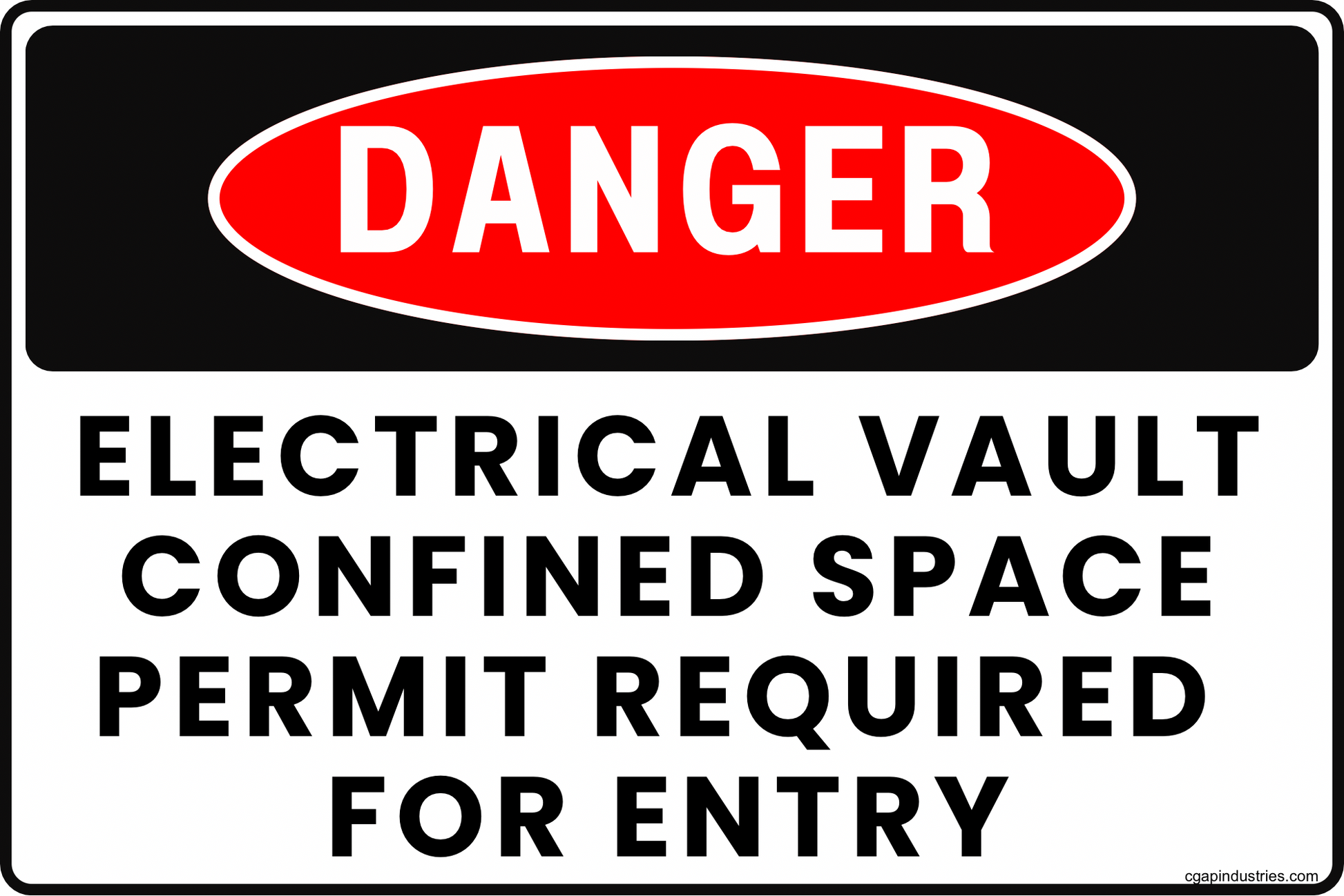 The CGAP Safety “Danger – Electrical Vault – Confined Space – Permit Required for Entry” sign is designed to communicate one simple operational reality: this vault is a controlled space, and entry must be managed through a permit process. The bold red DANGER header signals severity at a glance, while the confined space and permit language helps align expectations for contractors, maintenance crews, and anyone working near vault access points.