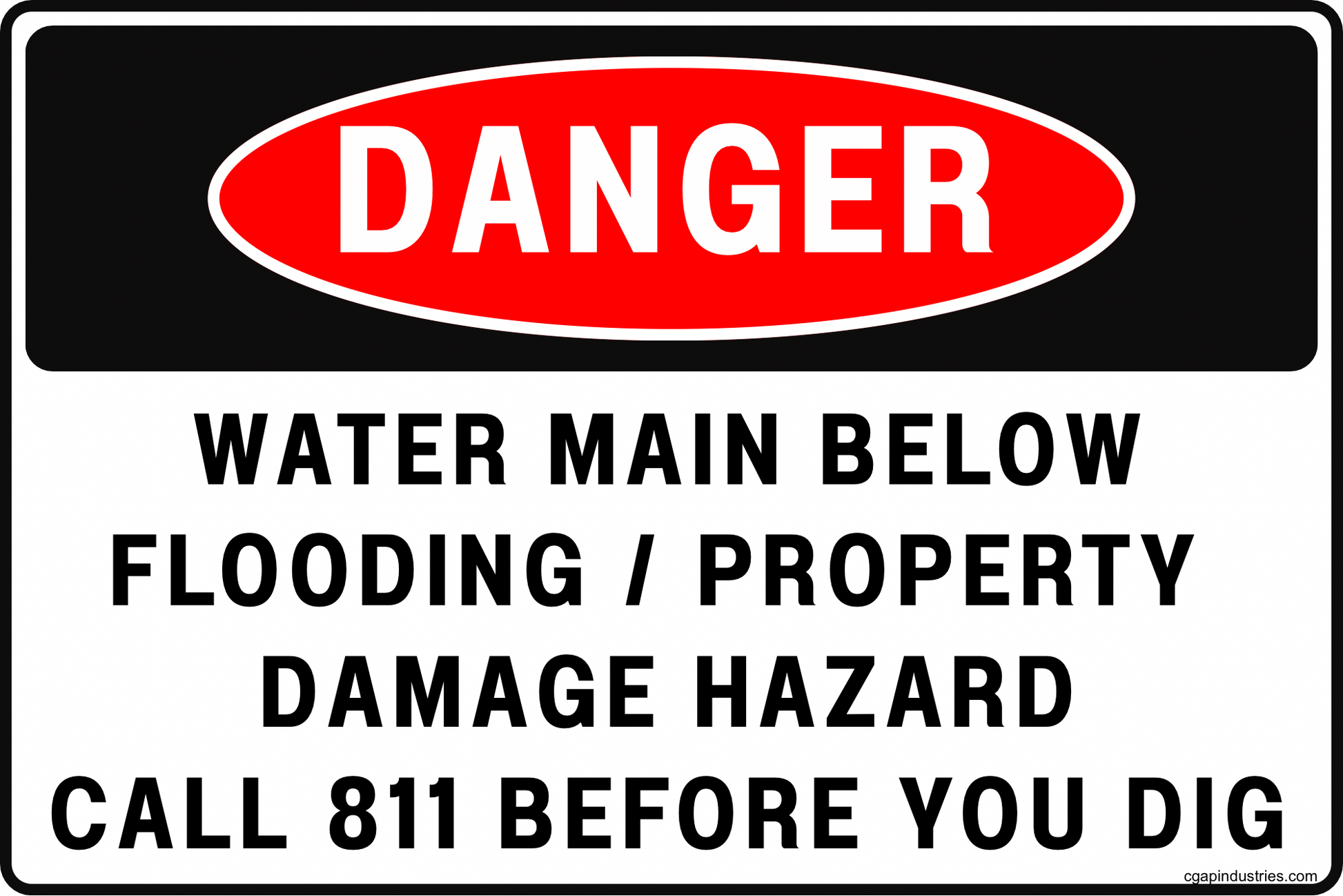 - PREVENTS FLOODING, JOB DELAYS, AND COSTLY RESTORATION – A water main strike can flood excavations, undermine soil, damage nearby property, and halt a project while emergency repairs and cleanup occur. This sign reinforces the stop-and-locate workflow.