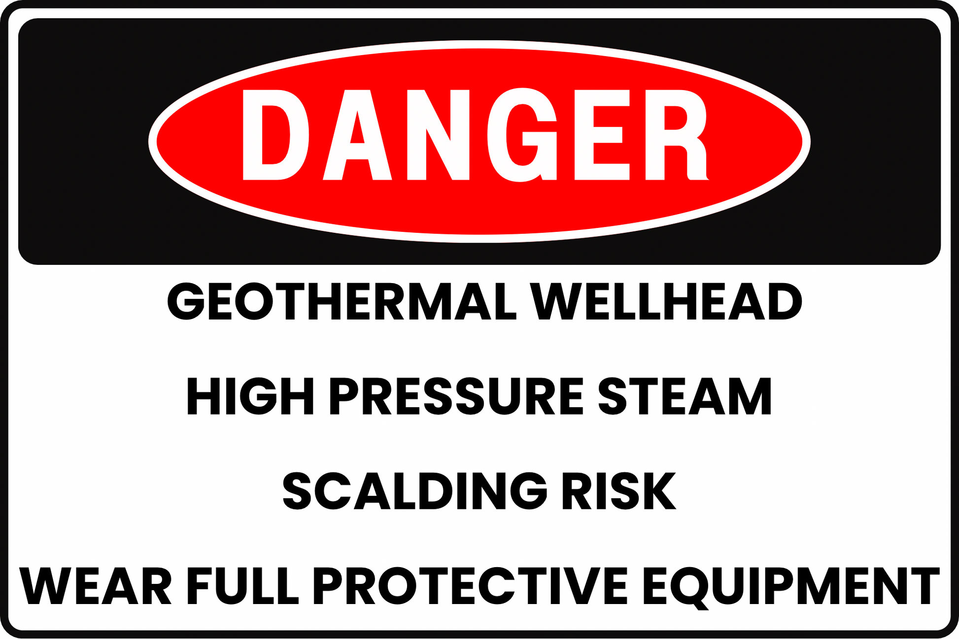• Improves operational awareness: High-contrast professional graphics and clear "DANGER" header provide instant hazard recognition near geothermal wellheads and steam lines to support site safety compliance.