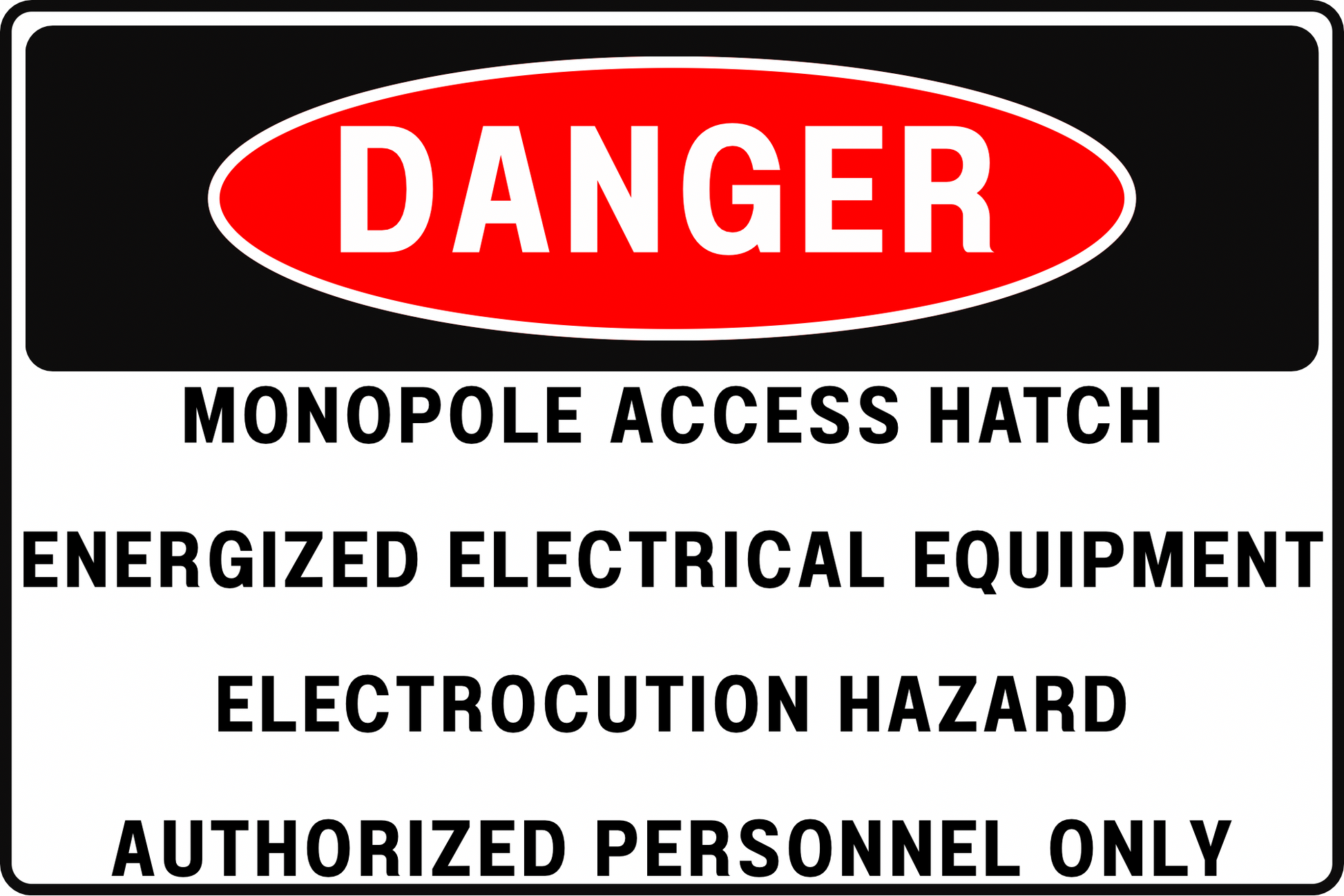 MONOPOLE ACCESS HATCH DANGER SIGN – ELECTRICAL SHOCK HAZARD – FOR TELECOM UTILITY SITES – 8X12 UV-RESISTANT, RUST-RESISTANT ALUMINUM – PROFESSIONAL FACILITY GRADE – BY CGAP SAFETY