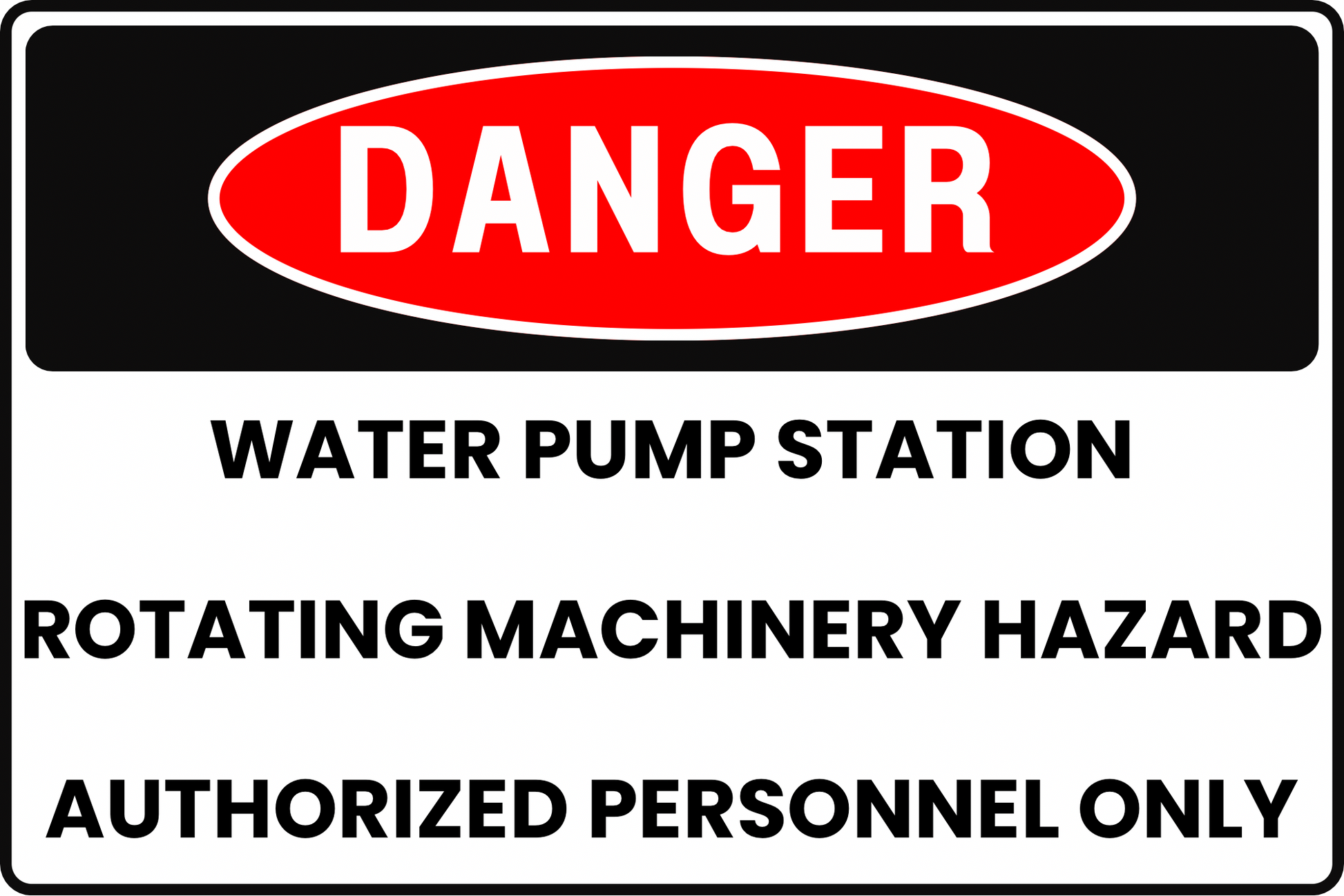 • Manages high-risk access control: Clearly identifies ROTATING MACHINERY zones within water pump stations and reinforces strict lockout-tagout procedures to reduce accidental exposure for employees, contractors, and visitors.
